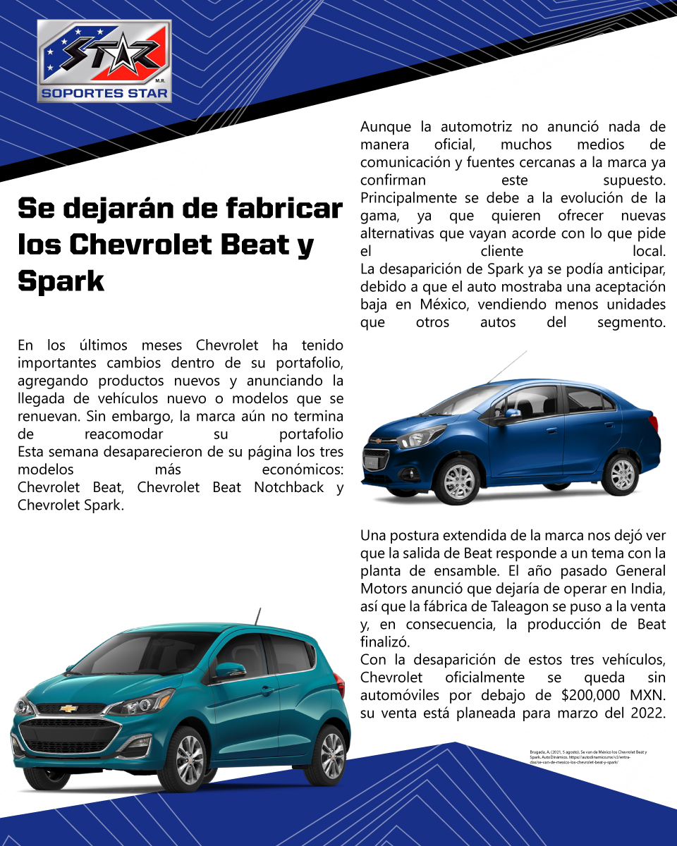Se dejarán de fabricar los Chevrolet Beat y Spark
