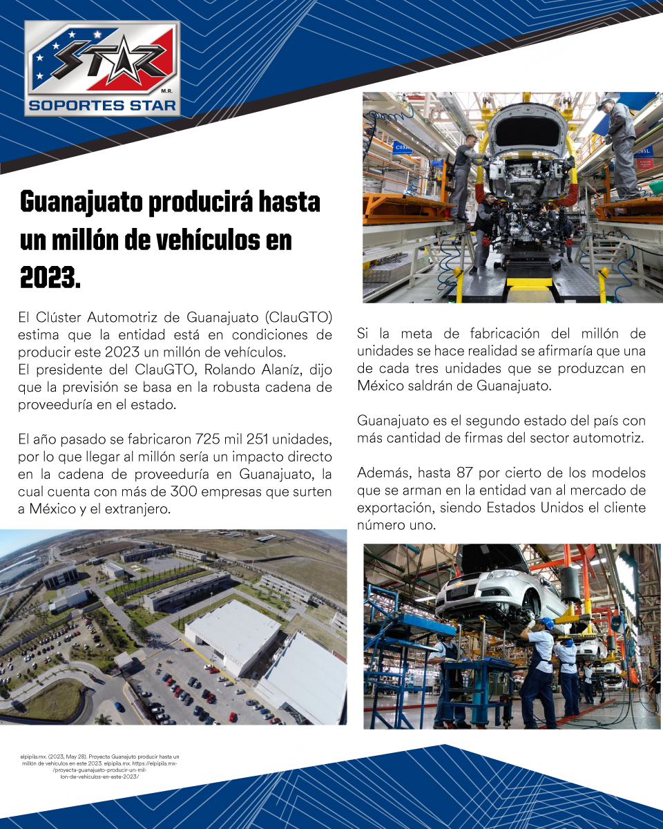 Guanajuato producirá hasta un millón de vehículos en 2023.