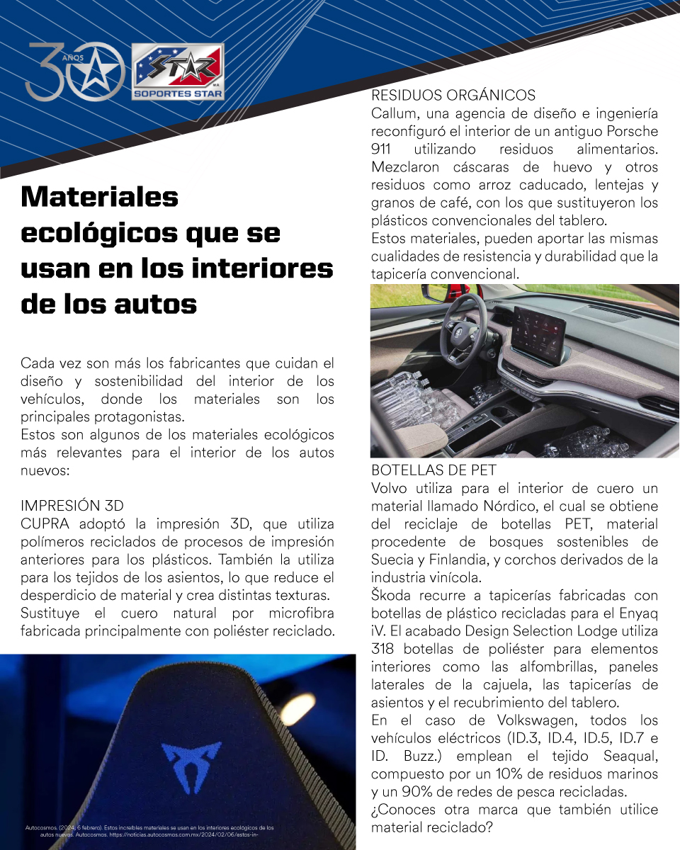 Estos son algunos de los materiales ecológicos más relevantes para el interior de los autos nuevos:
