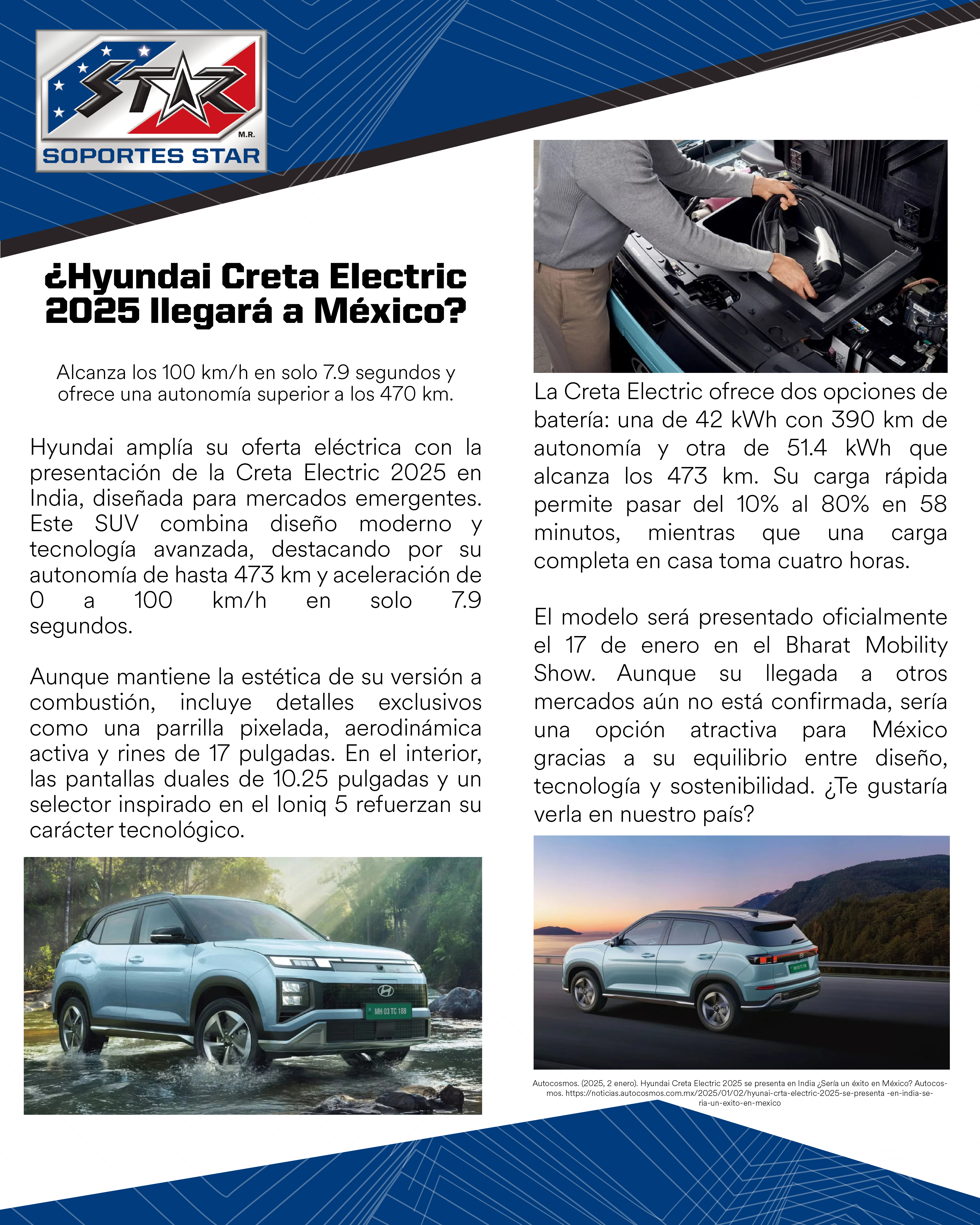 ¡La Hyundai Creta Electric 2025 ya está aquí! ⚡🚗 Con hasta 473 km de autonomía, diseño futurista y cero emisiones, ¿te gustaría verla en México? 🌎💚