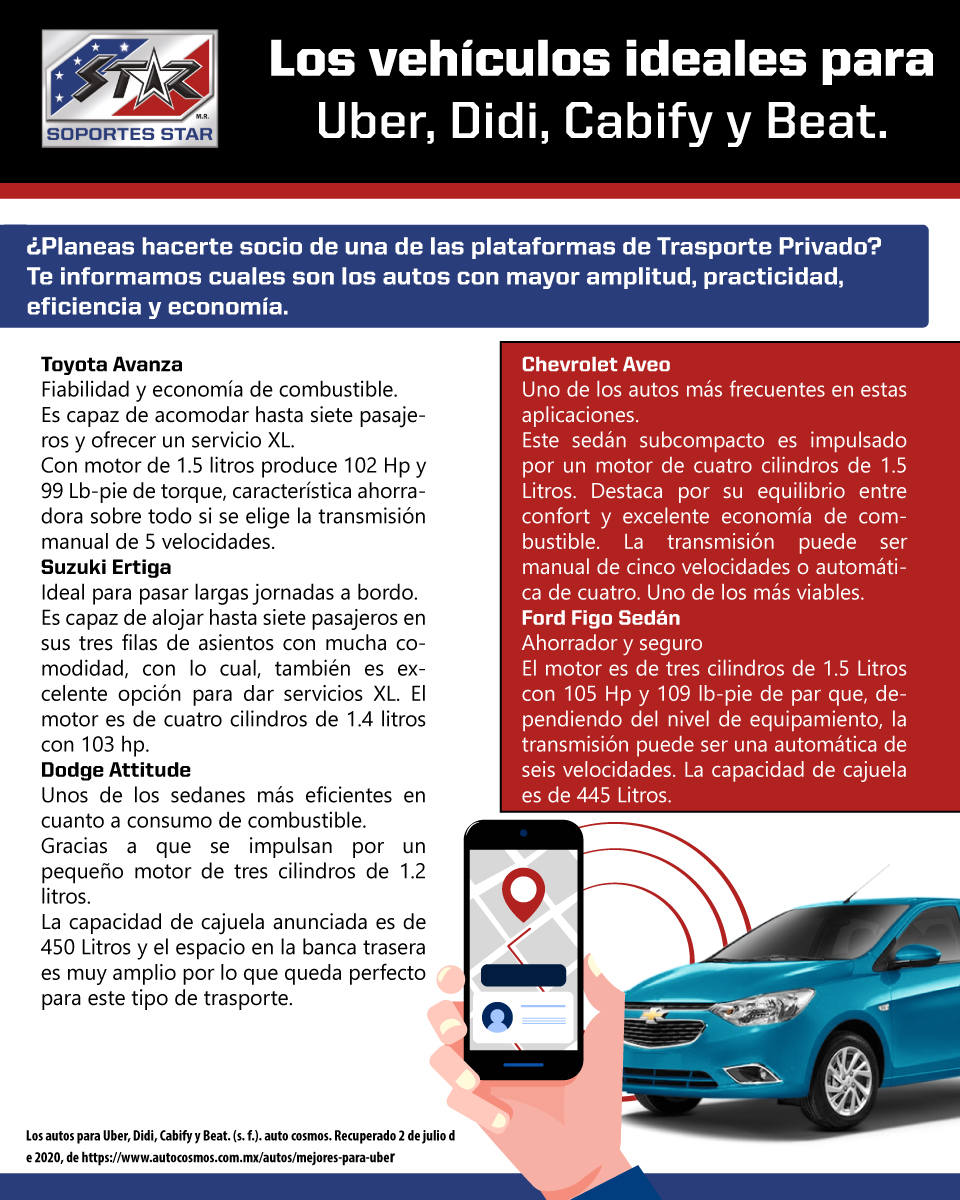 Los vehículos ideales para Uber, Didi, Cabify y Beat.